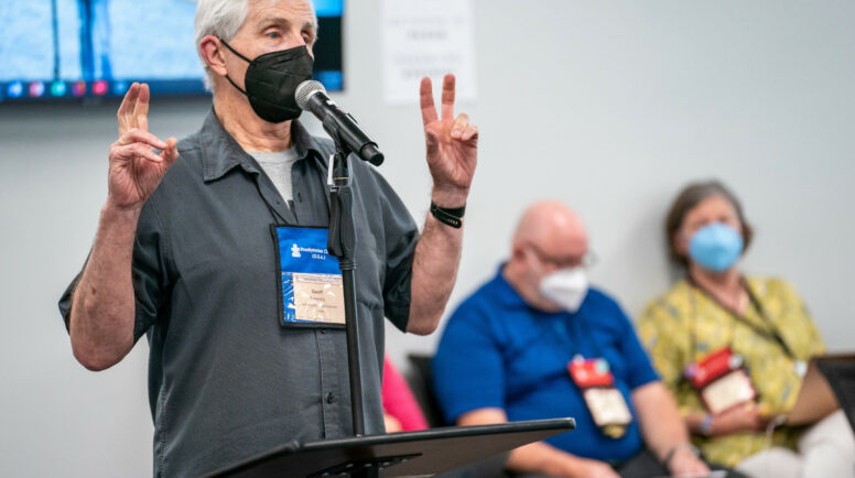 The Financial Resources Committee discussed the possibility of speeding up the timeline of developing and presenting alternate funding models. “I sense some urgency around this,” said Geoff Browning, a minister from the Presbytery of San Jose, who proposed an amendment that the Funding Model Development team would report back to the General Assembly in 2024, not 2026. “We want to see some real movement,” Browning said.
