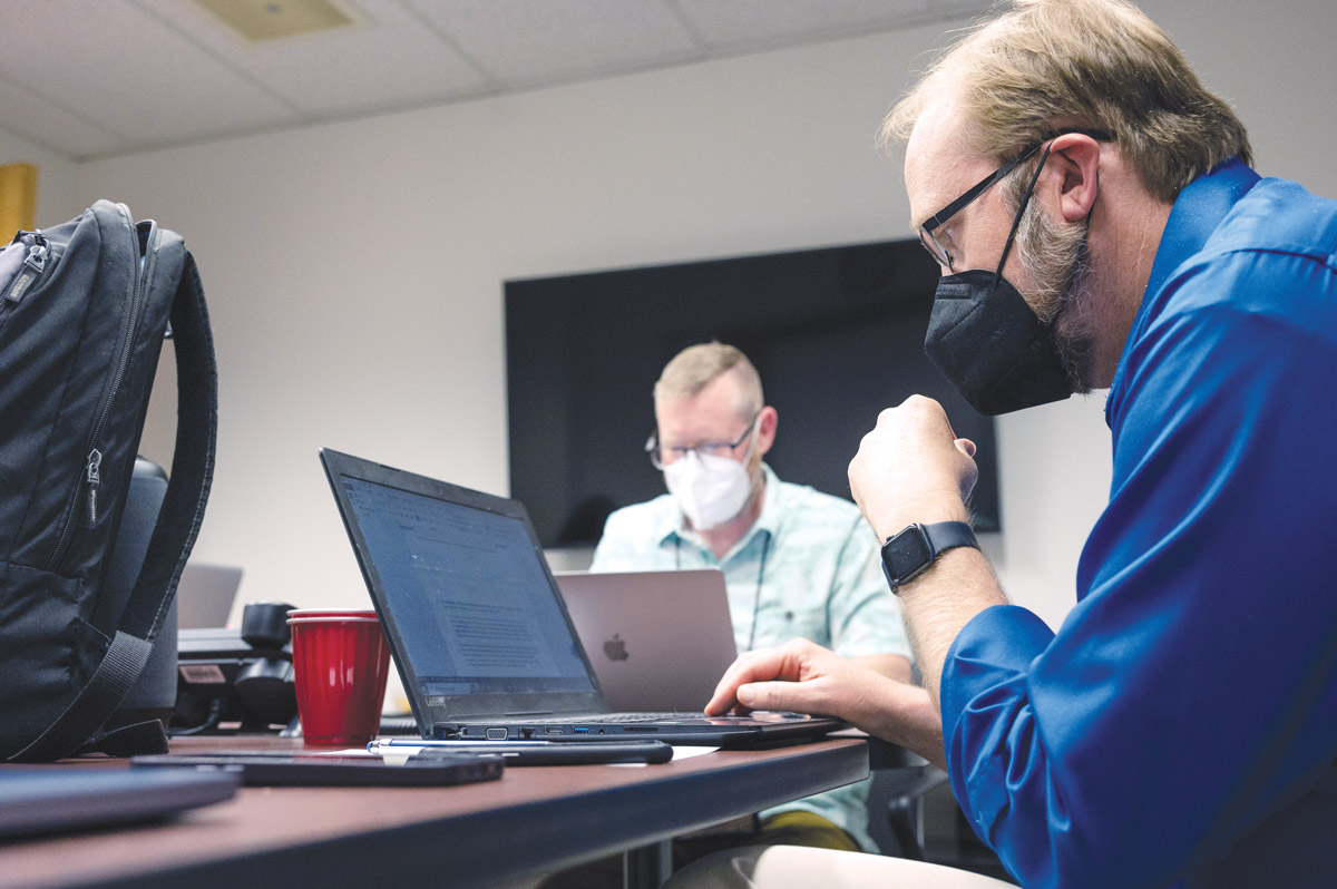 Outlook staff at work during General Assembly 225. Photos by Jonathan Watson and Gregg Brekke for Presbyterian Outlook.