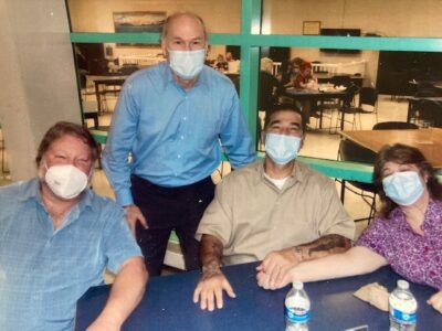 Just this week, over two years since their correspondence began, Antonio was released by the immigration judge and his new family was there at the gate to embrace him. Bill just invited me to the celebration barbeque this weekend.