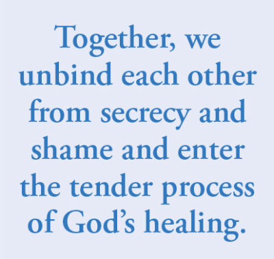 Together, we unbind each other from secrecy and shame and enter the tender process of God’s healing.