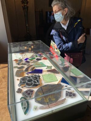 That moment is now frozen in glass in an art exhibit called “Remembered Light: Glass Fragments from World War II, The McDonald Windows” on display in San Francisco’s Veterans Building through Nov. 20. The show includes 25 glass works by 13 different artists built around the shards McDonald, an Episcopal priest, collected from the destroyed churches, synagogues and chapels he visited in England, France, Holland, Belgium and Germany in 1944 and 1945.