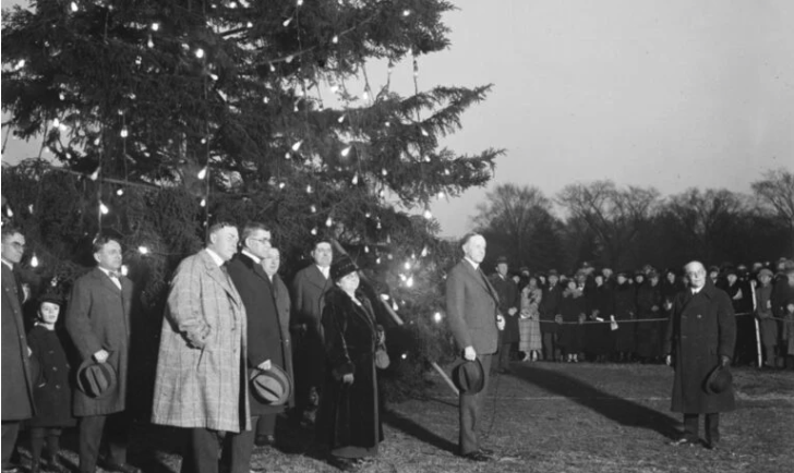 A church choir sang, Marine band members played and the president of the United States pressed a button to light the first National Christmas Tree under the gaze of thousands of onlookers.