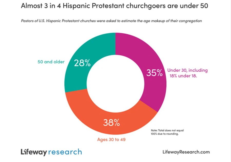 The study, conducted by evangelical research firm Lifeway, found that less than 9% of Hispanic congregations trace their history prior to 1950, with most (54%) having been established since 2000, including 32% founded in 2010 or later. Half of the churches (50%) are in a large metropolitan area with a population of 100,000 or more, and in the average Hispanic Protestant church, 35% of the congregation is under the age of 30, the survey found.