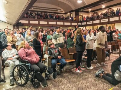 Monday was the last day that revival services in Hughes were open to the public. Tuesday and Wednesday, only those age 25 and younger are allowed in Hughes for services at 7:30 p.m. The public may watch services from other simulcast venues or from a livestream on Asbury’s website. Services in Hughes will end on Thursday, which is National Collegiate Day of Prayer, with a service at 8 p.m. for anyone 25 and younger. Updates to the schedule and other information is available.