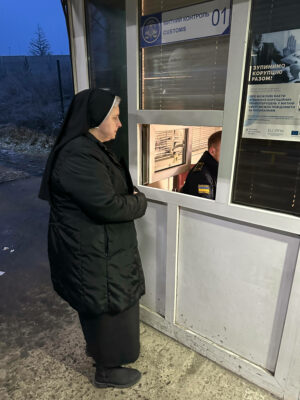 Sister Edita is nonplussed by the three hours it takes to cross the border. Much faster, she says, than other trips. Our translator, Natalya (last name withheld), is Ukrainian and evacuated to Slovakia with her two children and grandmother shortly after the 2022 invasion began. Her husband remains in Ukraine – as is required of all men – and works at a hydroelectric plant. He is exempt from conscription due to his young children and work — for now.