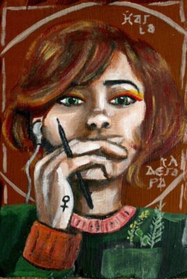 “The images themselves are something I hope might spark a conversation for people who have been hurt by Christianity, or the ones who have done some of the hurting,” noted Morbitzer. “But the stories of the saints themselves are the parts I really want to share.” She sends out biographies of each saint with every print she sells.