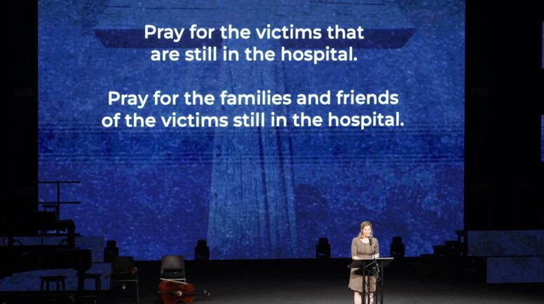 Inside the church, children’s minister Kelly Kitch stressed that “it’s OK to cry out to God.”