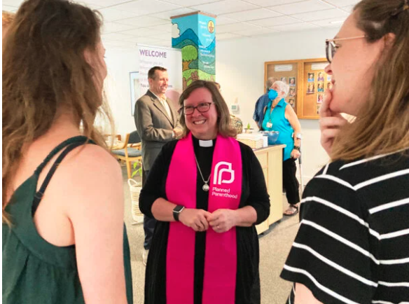 Chapel Hill, N.C. (RNS) — The Rev. Rebecca Todd Peters’ neon pink stole bearing the Planned Parenthood logo announced her subject even before she ascended to the lectern.