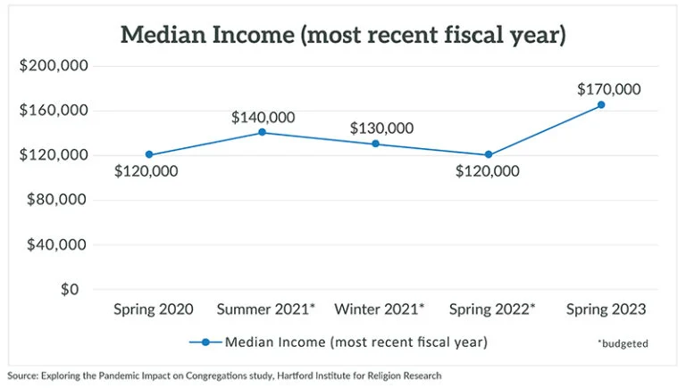 Giving at congregations went up by about 42% over the past three years, from a median of $120,000 in 2020 to $170,000 in 2023.