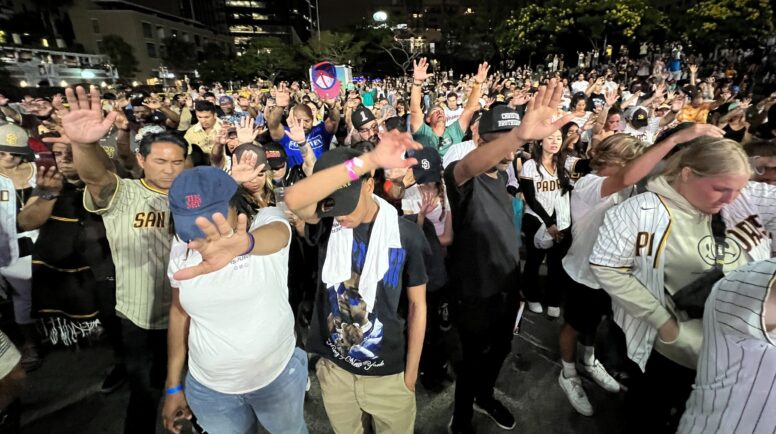 On a 74-degree evening, in the shadow of statues honoring Padres greats Tony Gwynn and Trevor Hoffman, attendees listened to praise music, heard testimonials from Padres and Rangers players and lifted their hands toward heaven in prayer.