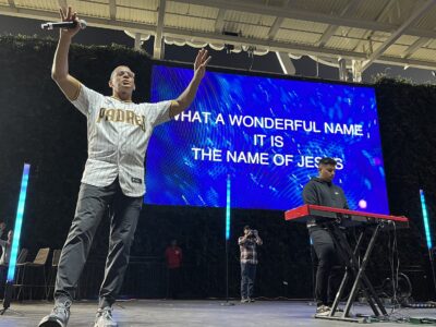 “And thank you for this day,” he continued. “It is truly a special day to be at Dodger Stadium with this many people talking about you, worshipping you and just being so grateful for you in our lives. We love you. And it’s in Jesus’ name. Amen.”