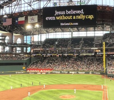 Working to connect with MLB fans, the same campaign is sponsoring the Rockies faith event as well as others by the Atlanta Braves, Chicago White Sox, Miami Marlins and St. Louis Cardinals. In addition, He Gets Us is advertising at Rangers and Los Angeles Angels games.