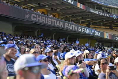 “We like the Dodgers, but we also wanted to support the fact that they’re promoting Christianity,” said Cindy Carcedo, whose family of five came to the game, “because I feel like our faith is so strong, but to hear it coming from the players and knowing that we’re all in this together, it just makes it so much stronger.”
