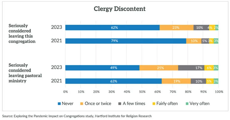 Thumma, who has been studying the impact of the pandemic, said a growing number of pastors have begun to think about leaving the pastorate.