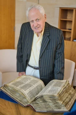 I didn’t hear about it until about three months ago. I knew the Museum of the Jewish People in Tel Aviv. They informed me they had been selected to exhibit the Sassoon Codex in Israel. I thought, OK, let’s take a look and maybe I and some others can buy it. And the others disappeared. They weren’t interested. So I said to myself, okay, Alfred, you buy it and provide the funds for ANU to buy it. I had no idea whether I’d be successful. I thought my chances were maybe 50/50, that somebody far richer than I would swoop in and buy it. But we were lucky enough to get it, and now it’s on its way to ANU.