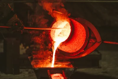 At one point, Collins said, artisans sliced the head of the Lee statue into strips with blowtorches, then aligned them facing outward toward observers along the edge of the crucible. The face of Lee changed colors as the flames super-heated the metal, turning the surface’s green patina into an ashen gray. As they finished, workers struck the pieces with a hammer.