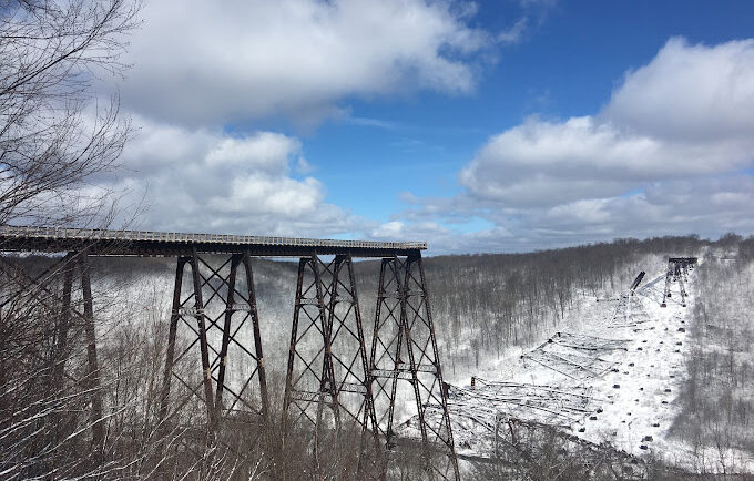 Our quiet hikes through the woods are a space where silence and stillness are rewarded with a chick-a-dee chipping or a wild turkey emerging from beneath cedar bows to find a snack. On the way home we stop at the Kinzua Bridge, a railroad trestle built in 1882. Billed as the “eighth wonder of the world” at 301 feet tall and 2,052 feet long, most of which collapsed during a tornado in 2003. There’s beauty in the brokenness. I wonder if any of these ordinary and sacred places will get a new beginning.