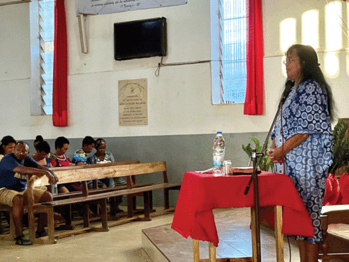 For the past several years, with help from Presbyterian Women, the FJKM Chaplaincy has run a human trafficking prevention initiative, Mamonjy (Malagasy for “save”), to raise awareness of the dangers of trafficking and to emphasize a simple message: “People are not for sale.” After learning that women saw foreign employment as an attractive option to escape abuse at home, Poget added a parallel initiative to educate congregations to confront domestic violence. For these trainings, she adapted materials developed by PC(USA) partners in the Democratic Republic of Congo that my colleague, Christi Boyd, regional facilitator for women’s and children’s interests in Africa, had shared at a regional meeting of the FJKM Women’s Association (Dorkasy).