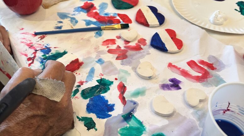 For the creation of the hearts, we turned to the participants in our Aden program which works with members of our community who have dementia. Over two days, our Aden program participants transformed from care receivers to caregivers. It was incredible to watch them take on the creative role of an artisan and to see the beauty that they were creating. One woman kept turning the clay hearts over in her hands murmuring, “So beautiful, so beautiful.”