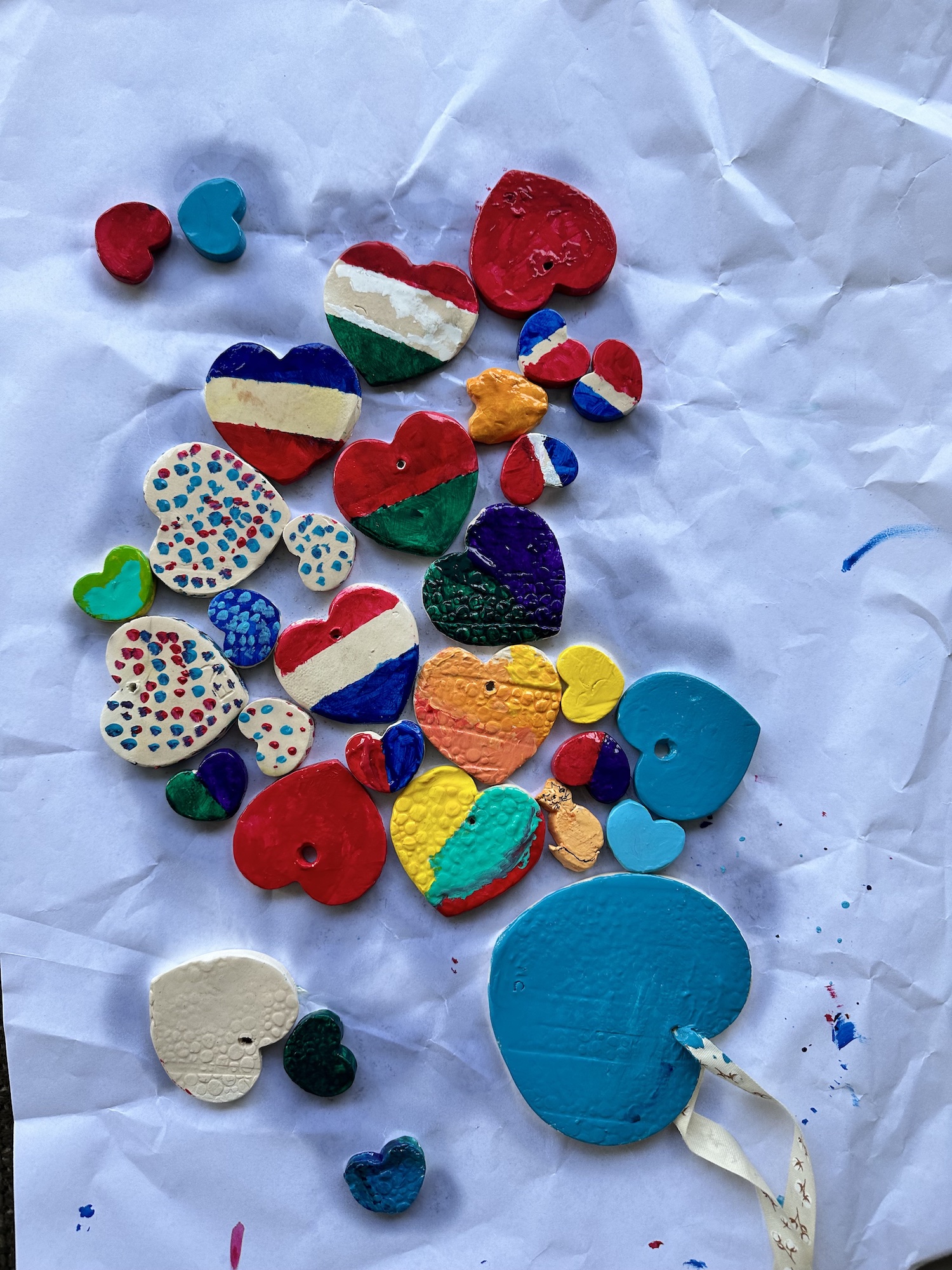 Upon the completion and firing of the clay by the ceramic artist and church member, the Aden program participants spent an hour painting and decorating 30 or so clay hearts which we later glazed over with a few coats of clear gloss paint for shine and texture.