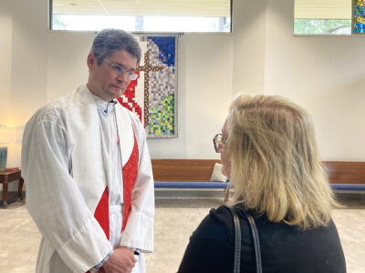 “It’s just a joyous situation,” said Becky Felton, 80, a member of the church who said she gained so much respect for Daly after he told the church that he had married his partner before he was formally ordained. “It’s so wonderful to see the church that I love embracing the people I love.”