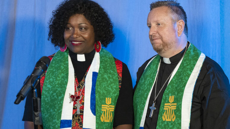 Salt Lake City — On a single ballot, the 226th General Assembly (GA) of the Presbyterian Church (U.S.A.) elected 249-171 and installed as co-moderators Cecelia (CeCe) D. Armstrong and Anthony (Tony) L. Larson. Both are teaching elders; Armstrong is from the Presbytery of Charleston-Atlantic and Larson is from the Presbytery of New Harmony.