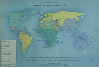 For me, this General Assembly showed the transformation that has taken place in the PC(USA) World Mission program. I celebrated 15 years as a mission co-worker at this GA (having begun July 1, 2009). When I started, the PC(USA) annual calendar stated that “314 missionaries were serving in approximately 60 countries.” This included 205 mission co-workers and 67 young adult volunteers (YAVs) as well as some other types of volunteers. Now there are 63 mission co-workers, with a handful slated to end service in coming months, and around 15 YAVs. In 15 years, those formally in mission service have declined by 75%. Our attrition rate has been roughly twice the rate of decline of Presbyterian membership over this time. Since 2020, there have been no new mission co-workers commissioned at General Assembly and we are also part of the denominational hiring freeze. When we leave, we know we are unlikely to be replaced.