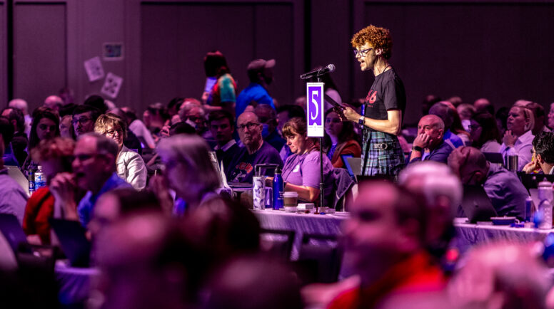 Matt Gaventa, co-moderator of the Covenant Network of Presbyterians Board of Directors, and an overture advocate from Mission Presbytery, said, “In short, what this overture does is simply require us to talk, as siblings in the diverse body of Christ that is the Presbyterian Church. It says that acknowledging the reality of that diversity is important enough to us at this moment in our church’s life that we are willing to bring it to the surface every time we prepare to lay hands on one another and joyfully enter into the service of the risen Christ.”