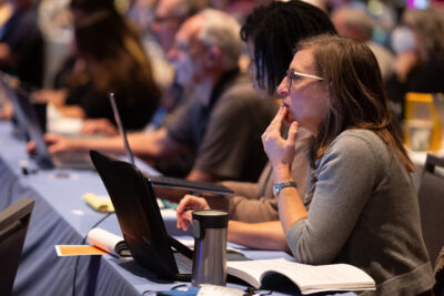 Further action by the assembly on Polity Committee overtures consumed the first half of Wednesday afternoon’s plenary session. Changes to the Book of Order cannot be included on the consent agenda and must be approved by the assembly before being submitted to presbyteries for approval and eventual inclusion in the Book of Order. Therefore, all the committee items required assembly approval.