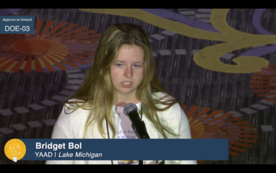 “One month ago I graduated, or should I say ‘survived’ high school,” said Bridget Bol, a Young Adult Advisory Delegate (YAAD) from the Presbytery of Lake Michigan.