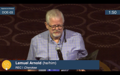 Lemuel Arnold, a ruling elder commissioner from Cherokee Presbytery, shared his perspective as a pediatrician practicing for 45 years who has dealt directly with gun violence and children.