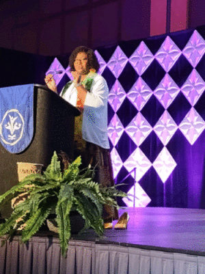 “Our congregations should feel like that too,” she said to applause, “welcoming, affirming, allowing folks to just be loved, because love rejoices in the truth and loves bears all things and believes all things and hopes all things and endures all things.”