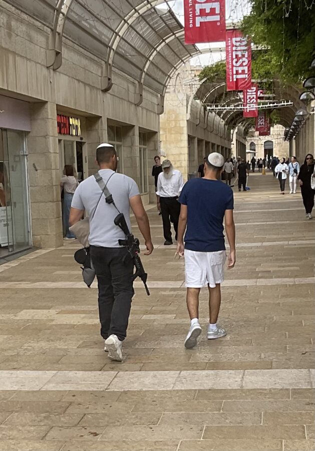 Following the events of October 7, Itamar Ben-Gvir, a far-right politician and Minister of National Security of Israel bragged about having handed out 100,000 gun permits to the Israeli public. Today, it is common to see Israelis walking the streets of Israel’s cities with assault rifles slung over their shoulders.