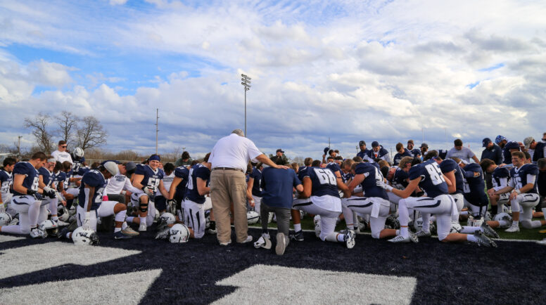 “Just showing up” to pray is part of the fabric of our student athletes’ lives. I am often reminded that within this circle, there are those who have a deep faith and those who never imagined that they would get down on one knee and hold hands with their teammates to pray for one another, for wisdom, for forgiveness and love, to pray for good sportsmanship, and finally, to pray for safety for both teams and that they will play with love and compassion for the game and that, at the end of the day, they can rejoice that each of them has done their best.