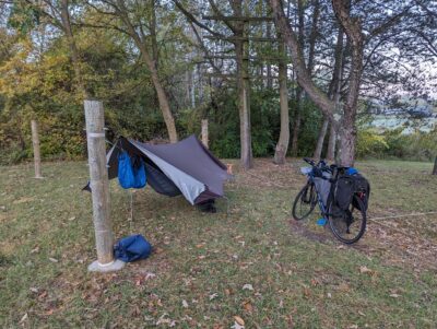 The gentle glow of pre-dawn light pulled me from slumber. The air had a chill, and I lingered in the comfort of the hammock for a moment longer before unzipping the bug mesh and slipping on my slightly frosty shoes. While stretching, I gave thanks for another day biking on the Ohio-to-Erie Trail (OTET), from Cincinnati to Cleveland. Puffs of my breath followed me around camp as I packed and prepared my bike. Another 40 miles lay ahead of me. On the other side: My Columbus-based family and a shower.
