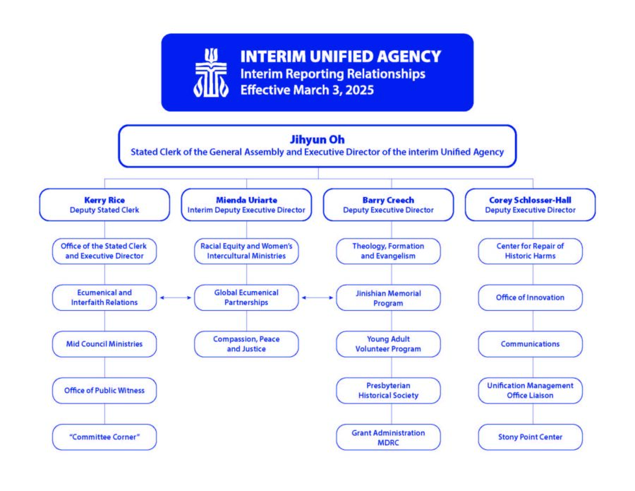 Oh, the Stated Clerk of the General Assembly of the Presbyterian Church (U.S.A.) and Executive Director of the IUA, announces this interim leadership team which is effective as of March 3, 2025:
