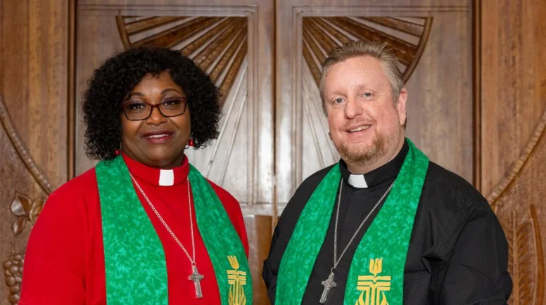 Teaching Elder Josh Robinson, Moderator, Mission Presbytery, and Teaching Elder Patricia Stetson-Warning, Vice-Moderator, Presbytery of Plains and Peaks