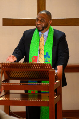 Bentley preached a message that moved those gathered in person to applaud and frequently offer words of affirmation throughout the sermon. He compared the context of 8th century Judah BCE of the prophet Micah with the modern context of the 21st century noting, “We’ve just become more technologically savvy, more advanced, more sophisticated and superior at working wickedness and implementing iniquity, in doing what my grandmother called ‘devilment.’ This ethical lapse amongst the leadership of the nation, the ones who are supposed to be modeling covenant life and commitment, the ones who have been charged with superintending the wellbeing and flourishing of the people, this ethical lapse has had not only disastrous economic consequences but devastating ecological consequences as well.”