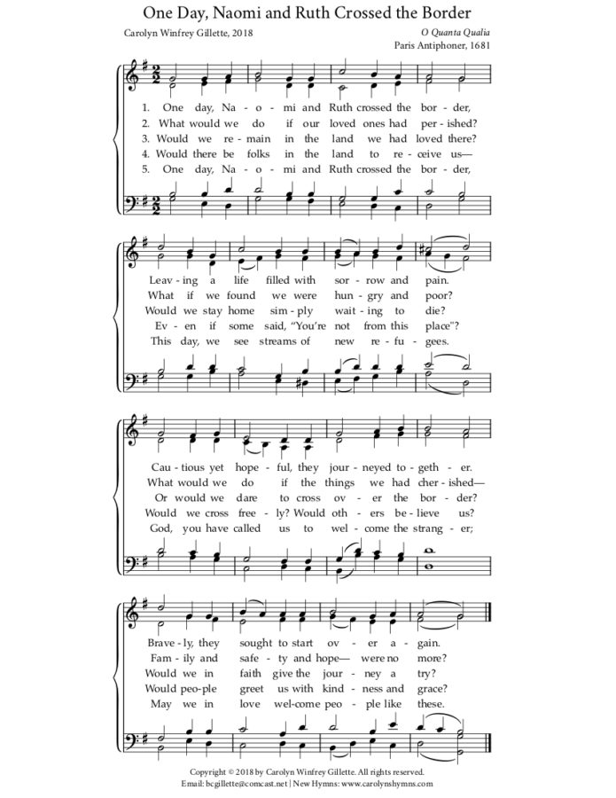 Download a PDF of the hymn: One Day, Naomi and Ruth Crossed the Border