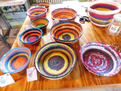 Some of the crafts that refugees have made from discarded materials. (Photo by Kathy Melvin)