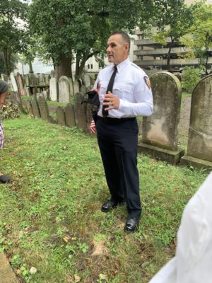 As a young patrolman, Giacoma Sacca, now the chief of police in Elizabeth, walked a beat that included the First Presbyterian Church property. Sometimes “I’d walk in and explore,” wandering through the rows of headstones – an estimated 2,000 or so of them, dating from 1701 or even earlier.