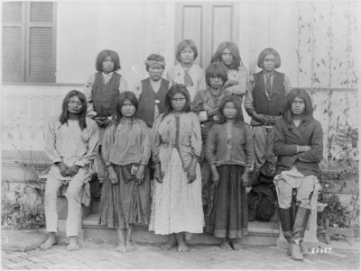 With that legislation came compulsory education for Native American children at residential schools, and the policy known as assimilation. It rested on the racist belief – supported both by the government and by missionaries of the church – that all that was Native was inferior, and needed to be cast out and replaced by white, Western ways. Captain Richard H. Pratt, the superintendent of the Carlisle Indian Industrial School in Pennsylvania, wrote in 1892 that while one general contended “the only good Indian is a dead one,” he favored forced internal transformation: “Kill the Indian in him, and save the man.”