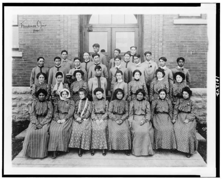 The photos are haunting. Rows of Native American children wearing military uniforms, their long hair – for many a symbol of power and strength – chopped short upon arrival. Children kneeling by their cots, their hands clasped in required prayer, stern-faced teachers standing watch.