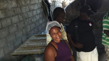 I was riding in the back of a pick-up truck on a very rutted, dusty dirt road between Anse a Galets, a..