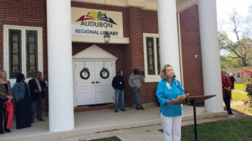 The former Clinton Presbyterian Church in Louisiana now serves its community as a public library.