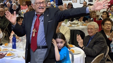 Sisters Jane and Caroline Kurtz and the Rev. Bill Chadwick are honored via Zoom.