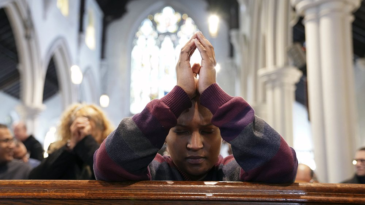 NEW YORK (AP) — The Lord's Prayer ended with the bang of dozens of fists that landed on open palms after a..